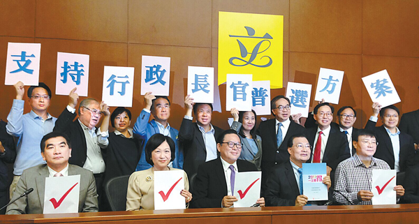 建制派議員除立法會主席曾鈺成及醫學界議員梁家騮外,共41名議員參與聯合聲明。聲明指出,方案符合基本法、8.31決定和香港實際情況,若方案「得以通過」,將有助解決香港長期有關政制問題的爭拗,讓社會可以集中精力,解決特區當前面對的各項問題,符合香港長遠發展需要和國家利益。