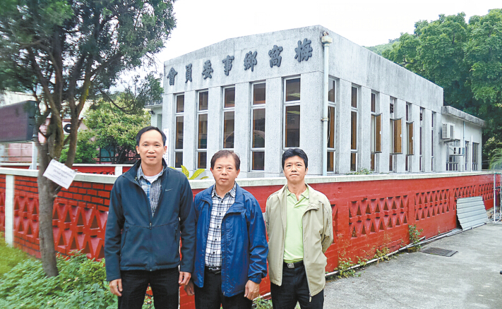 新當選梅窩鄉委會主席黃文漢(左一)與第一副主席鄒長福(中)、副主席李國強合作完成今屆鄉委會工作。 記者 周駿攝