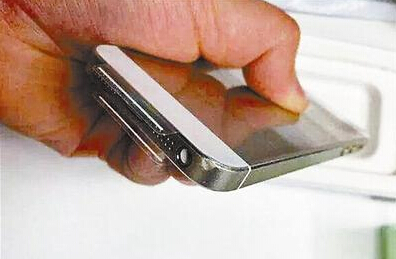 微博上有網友第一時間拿到了富連網銷售的二手iPhone 5s,從圖片來看,該用戶拿到的金色iPhone 5s磕碰比較明顯,屏幕頂端邊框與底端邊框都有明顯的磕痕。