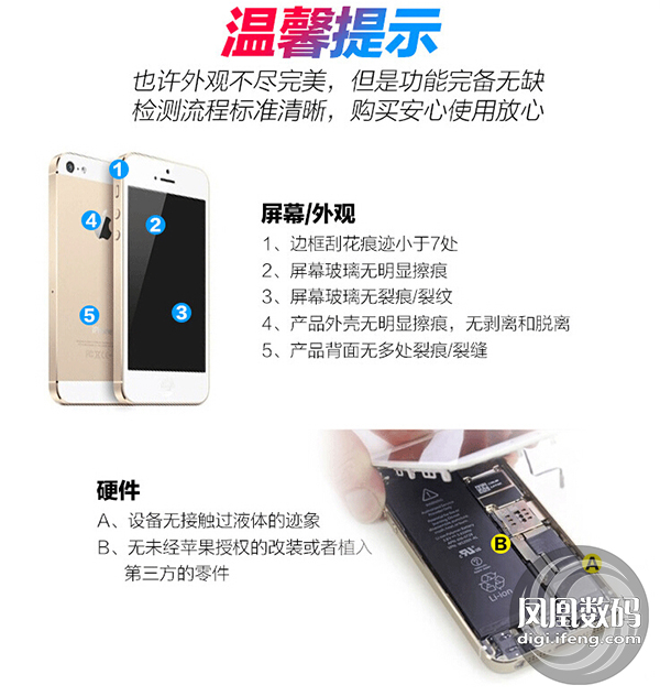 所以,富士康認可了這些二手手機存在外觀磕碰的可能性。但對此我們卻充滿了疑問,這些疑問的根源來自於官方給出的一份檢測標准。