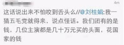 於是一波的輿論情緒開始在對她群起而攻之。劉桂娟也不示弱,在微博上將反對聲音稱為“神經病”和“五毛”。隨著反對聲音的進一步擴大,劉桂娟刪掉了之前的微博,但她之後又不斷發布新微博回擊,之後又立刻刪除……蠻奇怪的。