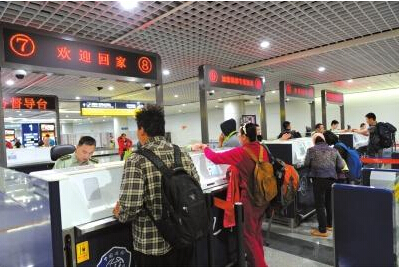 4月26日,從加德滿都回國的旅客通過成都雙流國際機場邊防檢查站。新華社發