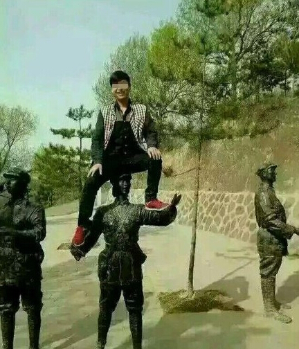 原标题:坐红军雕像上拍照吴起男子道歉承认错误