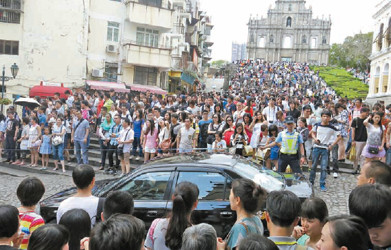 【香港商報网訊】昨日是五一勞動節假期第二天,香港旅業人士苦見內地旅客大減,齊聲叫苦。隔一大海的澳門卻「風光依然」,大批內地旅客繼續「湧澳」,再次逼爆中區和大三巴等旅遊旺區。警方需要首次出動「皇牌」措施,在市中心新馬路一帶實施「一級人潮管制」近三小時;大三巴亦需採取潮水式放行。儘管人數眾多,整體秩序仍見良好。今日周日是假期最後一天,料仍有內地遊客赴澳最後衝刺,澳門警方嚴陣以待應付離境人潮。