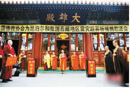 中國佛教協會為尼泊爾和中國西藏地區震災超薦祈福捐款法會4月27日在北京舉行。中國佛協會長學誠法師倡議全國佛教界積極行動,通過各種形式參與尼泊爾和中國西藏地區抗震救災和災后恢復重建工作。
