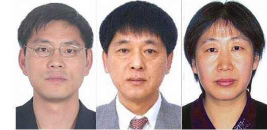 原云南国税局官员李文革(左)、原辽宁省希瑞集团有限公司董事长杨希利(中)、原中石化北京燕山石油化工有限公司财务部高级主管方翠英(右)。