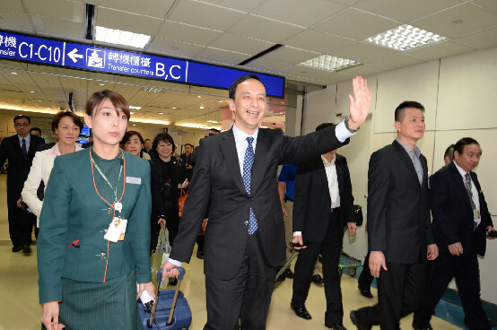 朱立伦在机场接受媒体访问。他说,这次访问大陆,明知台湾有部分人会用各种手段进行抹黑、造谣;但身为国民党主席,他要为台湾下一代及两岸关系继续努力,追求和平及合作。