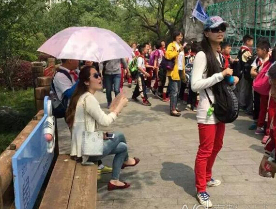 4月30日18时许,网友@hellhell贴出一组学生给老师打伞的组图称,“现在的老师也真是牛了。”南都记者注意到,这组图片共三张,显示一位导游正带领一队学生观光,队伍后方背着书包的一短发男孩则在给一名长发女子撑伞,该女子戴着墨镜。此后,女子坐在长椅上,男孩依然为其撑伞。