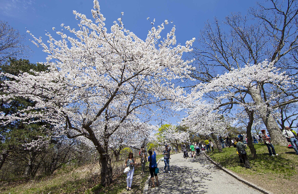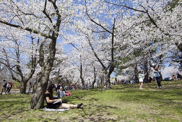 加拿大多倫多的櫻花進入盛開期,櫻花盛放的高地公園吸引了眾多游人。