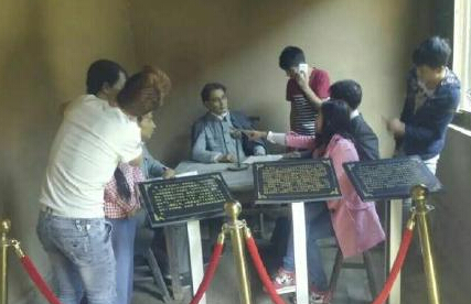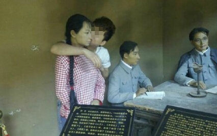 陕西革命旧址女雕像遭袭胸亲脸