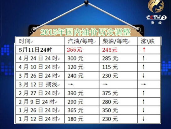 今年油價歷次調整。(圖片來源:央視視頻截圖)