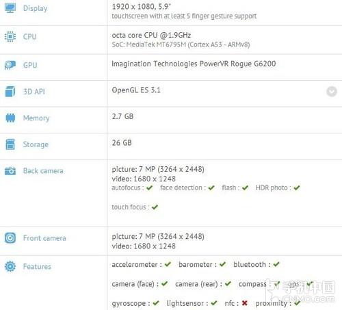 據GFXbench跑分數據顯示,OPPO R7 Plus將采用5.9英寸1080p顯示屏,搭載聯發科MT6795 64位八核處理器,內置3GB RAM+32GB ROM,據稱測試的前置攝像頭為700萬像素,後置攝像頭也為700萬像素,不過它們的規格應該都是800萬像素。