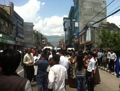 新华网消息,中國和尼泊爾邊境15時5分左右再次發生地震,正在吃午飯的記者感到震感強烈。吉隆口岸四周的山上塵土飛揚,不時有石頭掉下。守衛國門的武警官兵在廣場迅速集合。