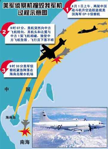 2001年中美南海撞机事件示意图