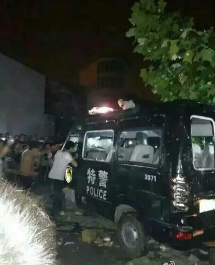 5月15日早上7点多,网友@资讯商丘微博爆料:实拍永城市实验高级中学三高食堂被砸,因为食堂经理殴打卖鸡蛋老人,校方不给予回复,食堂经理消失不见,学生抗议强烈,已经把特警车推翻砸烂。