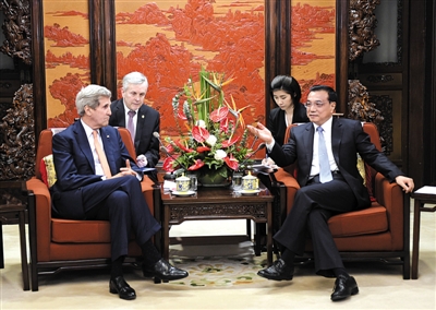 據新華社電 國務院總理李克強16日下午在中南海紫光閣會見美國國務卿克裏。