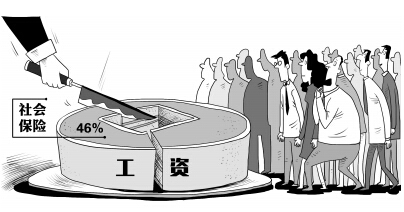 目前中國單位和個人為在職職工繳納的五項社會保險,約為職工個人工資的46%。人社部曾表示,在列出統計數據的173個國家和地區中,中國社會保險繳費率居第13位,高于160個國家和地區,其中養老保險繳費率偏高。