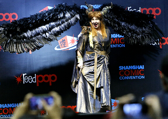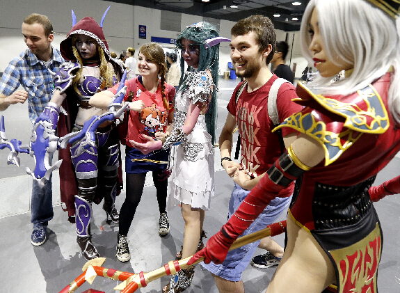 一些中外漫迷在博覽會上打扮成漫畫角色合影留念。