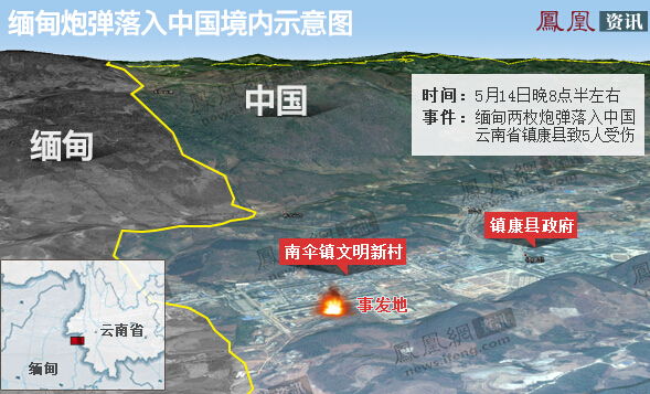 缅甸炮弹落入中国示意图 来源:凤凰资讯