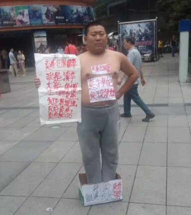 这究竟是囊个回事呢?原来该男子自称是清华大学的博士+研究生,由于家庭经济困难,无法实现出国留学深造的梦想,于是就在街头卖身,寻求热心的富婆把他收买了,不过该男子标出的卖身价格的确吓死人,该男子居然要卖500万元,男子说:“少了一元钱都不卖,因为我值500万元”。