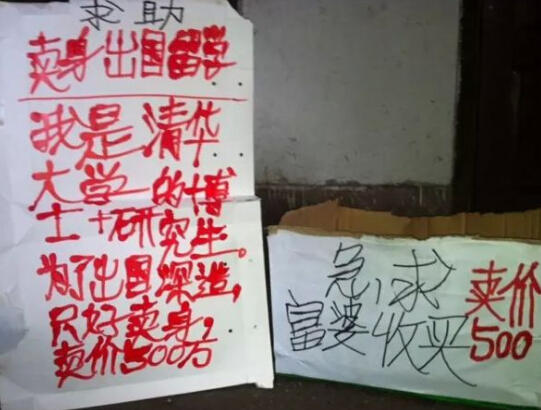 原标题:“清华大学博士”现身街头 500万卖身