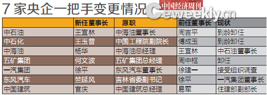 包括“三桶油”、“兩輛車”等在內的7家央企完成一把手調整,新帥擔負反腐與改革雙重重任