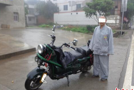 事发当天,渝北交巡警兴隆公巡大队民警驱车在210国道石鞋路段巡查。下午16时许,执勤民警发现一穿着僧人服装的司机驾驶摩托车,在路面上歪歪扭扭地行驶,周围车辆纷纷避让。民警立即拦下该摩托车进行盘查。
