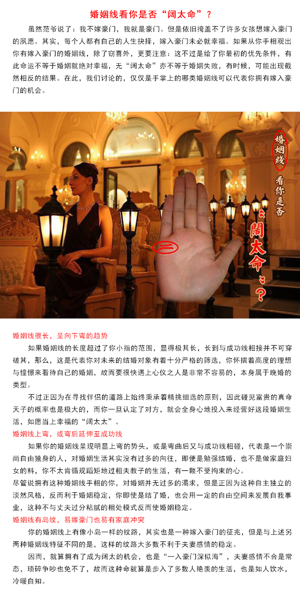 婚姻线看你是否“阔太命”