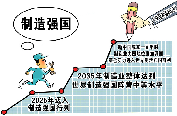 到2020年,基本實現工業化,製造業大國地位進一步鞏固,製造業信息化水平大幅提升;到2025年,製造業整體素質大幅提升,創新能力顯著增強,形成一批具有較強國際競爭力的跨國公司和產業集群。