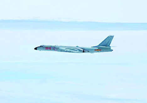 日本自卫队战机跟踪拍摄中国轰炸机经过宫古海峡。