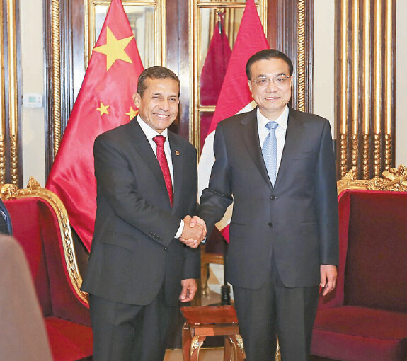 李克強同烏馬拉會談時表示,中國政府高度重視中秘全面戰略夥伴關係,願在中秘傳統友好基礎上推動務實合作取得新突破,加強國際地區事務協調,密切文化文明交流互鑒,促進兩國和發展中國家的共同發展繁榮,共同豐富世界文明多樣性。