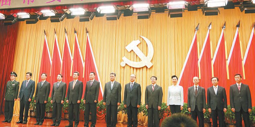 【香港商报网讯】记者同里报道:昨日,经过深圳市委六届一次全体会议选举,新一届市委常委班子产生。随后,13名新当选的常委与媒体记者简短见面(上图)。