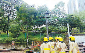 昨日清晨6時20分,輕鐵屯門市中心站附近有一棵大樹突然倒塌,樹干壓到架空電纜,影響屯門市中心站至兆麟站服務。港鐵發言人表示,輕鐵505、507、614、614P及751線須改道,不停屯門市中心站等車站。期間港鐵安排接駁巴士服務,接送受影響車站的乘客,來往三聖站及屯門碼頭。由於假期關系,接駁巴士運作順暢,未有出現人龍,經港鐵工程人員搶修及清理塌樹后,輕鐵服務至昨晨8時45分逐步回復正常。