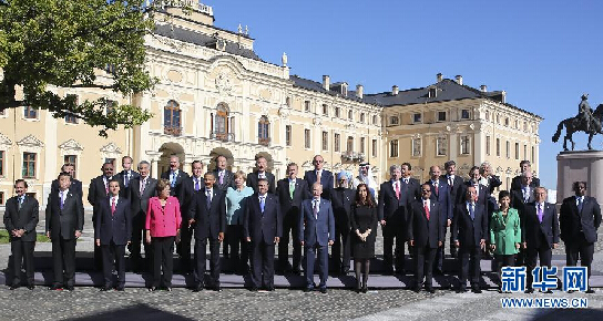 2013年9月6日,出席G20圣彼得堡峰會的多國領導人拍攝大合影。前排左二為中國國家主席習近平。