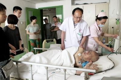吳中峰老人在魯山縣第一人民醫院接受治療。新華社發