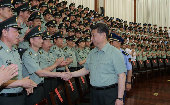 5月26日下午,中共中央总书记、国家主席、中央军委主席习近平亲切接见驻浙部队师以上领导干部和建制团单位主官。这是习近平在接见时发表重要讲话。(摄影:冯凯旋)