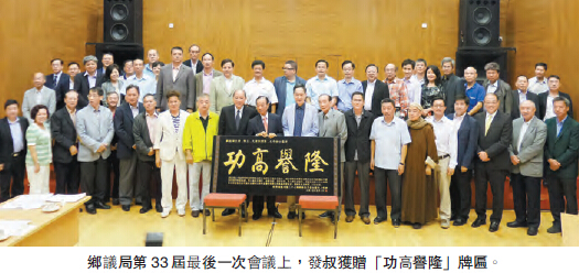 上月21日,發叔在該局執委會第47次會議致辭時首提醒議員,該局正副主席選舉會在6月1日當天舉行,請有志人士及早作出準備。在會議尾聲時,廈村鄉鄉委員會主席鄧勵東提出臨時動議,懇請發叔連任。鄧贊揚劉皇發任鄉議局主席以來,為新界原居民成功爭取將傳統權益寫進香港基本法,居功至偉,也為全港社會穩定盡心盡力。當時發叔笑著多謝大家好意之餘,自言已年近80歲,擔心身體未必撐得住,叫大家:「畀濜時間我考慮下啦!」