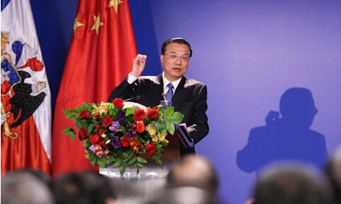 新京報快訊 李克強總理出訪拉美四國的最后一場正式活動,是出席中智建交45周年經貿研討會暨中智企業家委員會第七次會議開幕式并發表致辭。