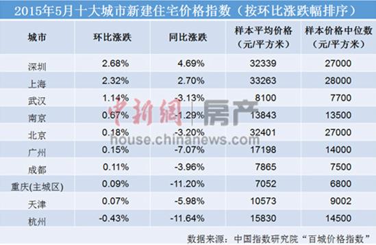 最新發布的“百城房價”數據也顯示,5月全國100個城市新建住宅平均價格為10569元/平米,環比由跌轉漲,漲幅為0.45%,同比跌幅收窄。此外,房價環比上漲城市增至48個,而4月份僅為39個。其中,近來因房價“跳漲”備受關注的深圳漲幅位居首位。