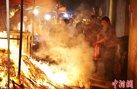 香客们不断将手中的香火扔进火堆里,引燃了“神树”下方的石棉瓦顶棚和百余根祈福带,过旺的香火火势一时间难以控制。