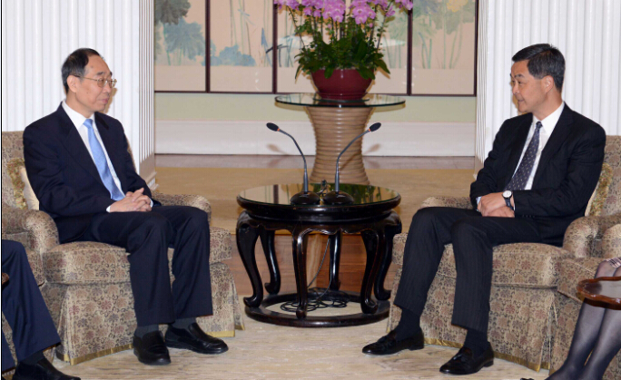 特区行政长官梁振英昨天下午在礼宾府会见福建省委书记尤权(左)