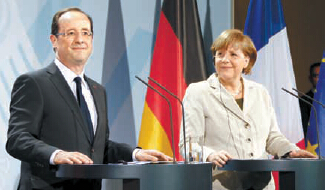 有跡象顯示,德法似乎將致力於保護貨幣聯盟不受損害。默克爾和奧朗德在5月22日的歐元區領導人峰會結束之后達成了一個共同文件并在第二天提交給了歐盟委員會主席容克。該文件是雙方對保護歐元區貨幣聯盟提出的建議。默克爾和奧朗德就歐元區經濟政策、經濟收斂、投資問題、財政問題、社會問題以及更強大的歐元區集團政府等方面提出了建議。其中大多數提議都將在現有的條約下實現,不過,如果有必要的話,不排除修改條約以對額外的主權轉移(即政府換屆)進行處罰的可能性。