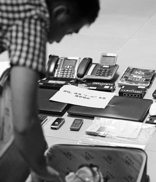 昨日,深圳警方展示查獲的電信詐騙作案工具。南都記者劉有志 攝
