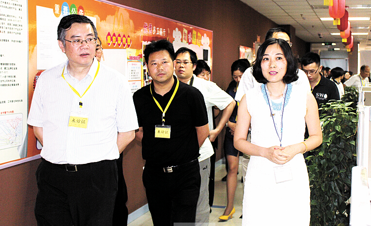 香港商报社社长陈寅(左一)率港澳传媒高层参访团访问电讯盈科永川呼叫中心。