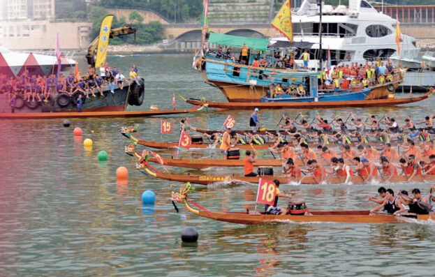 【香港商報網訊】記者周駿報道:「水面陣陣擊鼓聲,齊發的木槳濺水浪,數條龍船箭般衝出水面」,每年龍舟賽成為香港傳統文化的縮影。今年政府推出「2015香港龍舟嘉年華」,新界、港島及九龍全年將舉行50多場龍舟賽,端午節(本月20日)更是賽事高峰,大埔、西貢及香港仔等10多個地點均有賽事,而上月中、下旬,南丫島(北)榕樹灣和青衣兩地已率先揭開龍舟賽序幕,榕樹灣龍舟賽特色在「原汁原味」的漁村環境之下進行龍舟、舢舨搖櫓比賽;青衣龍舟賽則是在高樓林立環境下舉行的地區龍舟嘉年華。