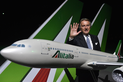 意大利航空公司董事长、前法拉利董事长蒙特泽莫罗(右)在罗马出席发布仪式。