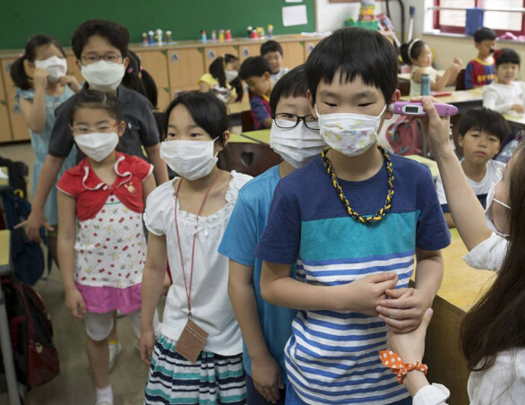當地時間2015年6月8日,韓國首爾,遊客戴口罩防止感染中東呼吸綜合征(MERS)。