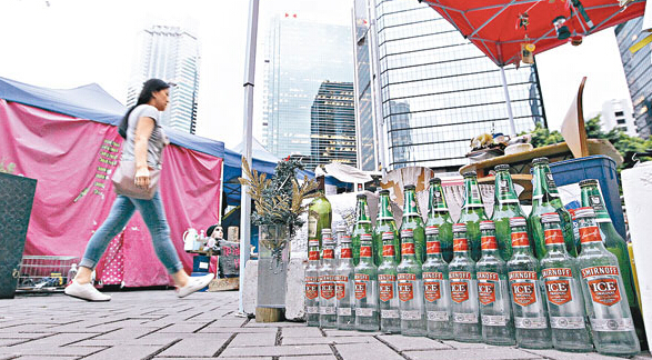 至于昔日“連儂墻”附近一個帳篷,被揭內有百多個玻璃酒瓶,對面一個帳篷外,亦有多個玻璃酒瓶,一旦爆發騷亂,恐被人用作攻擊武器。據知,該帳篷原本一直對外開放,但藏瓶消息曝光后,即被人拉上帆布遮蔽,更添詭秘。