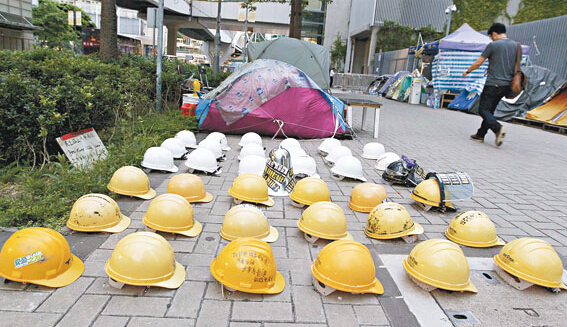 據香港媒體星島環球網6月10日消息:立法會表決政改方案在即,第二波占領行動如箭在弦,立法會大樓對開“占領區”竟驚現“武器庫”!以往的街頭帳篷近日增加至100多個,還新設置了物資站,排列“頭盔陣”,部分帳篷內更藏有可用作攻擊的大批鋁架、玻璃瓶和壓縮氣體等危險品,似有山雨欲來之勢,警方表示會密切留意事態發展。