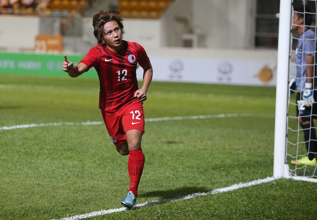 SP08.鞠盈智為港隊射成4比0後,振臂狂呼。志誠攝